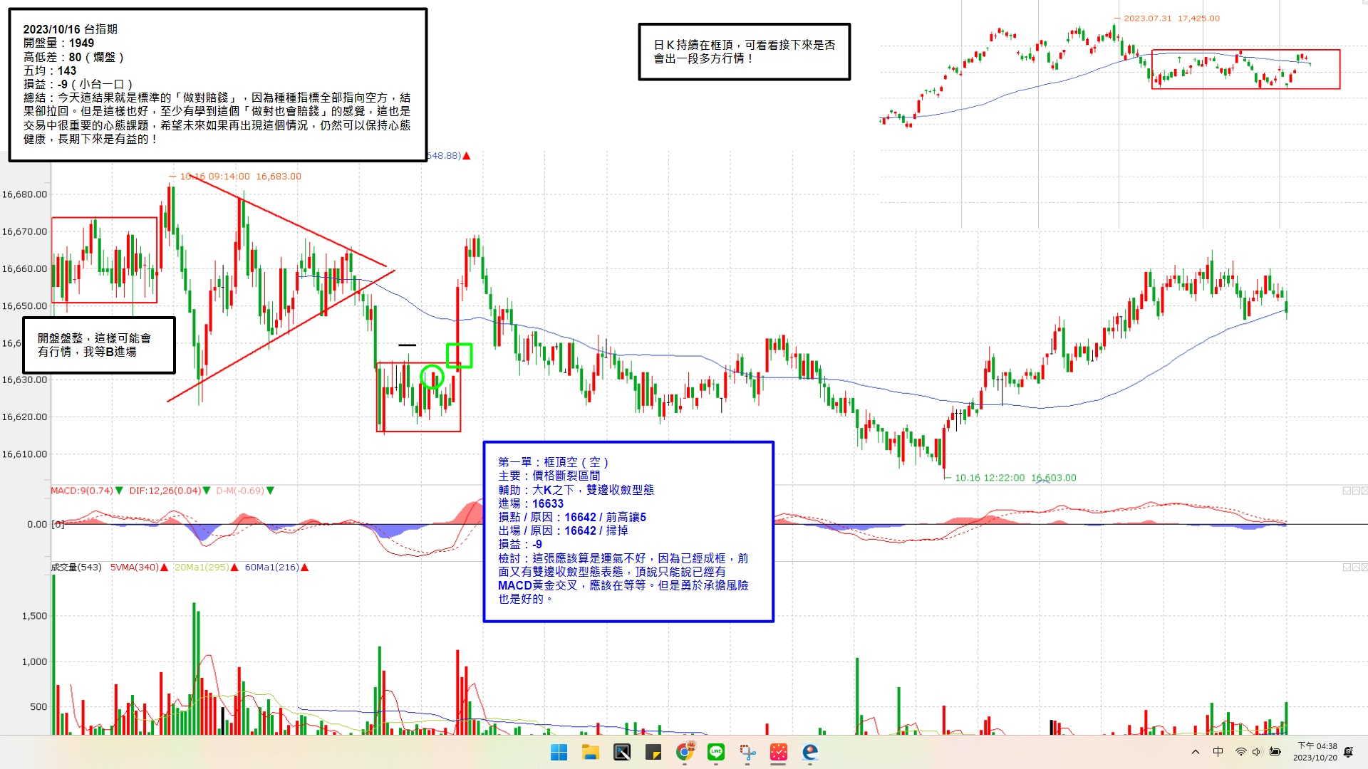 今天這結果就是標準的「做對賠錢」,因為種種指標全部指向空方,結果卻拉回。但是這樣也好,至少有學到這個「做對也會賠錢」的感覺,這也是交易中很重要的心態課題,希望未來如果再出現這個情況,仍然可以保持心態健康,長期下來是有益的!