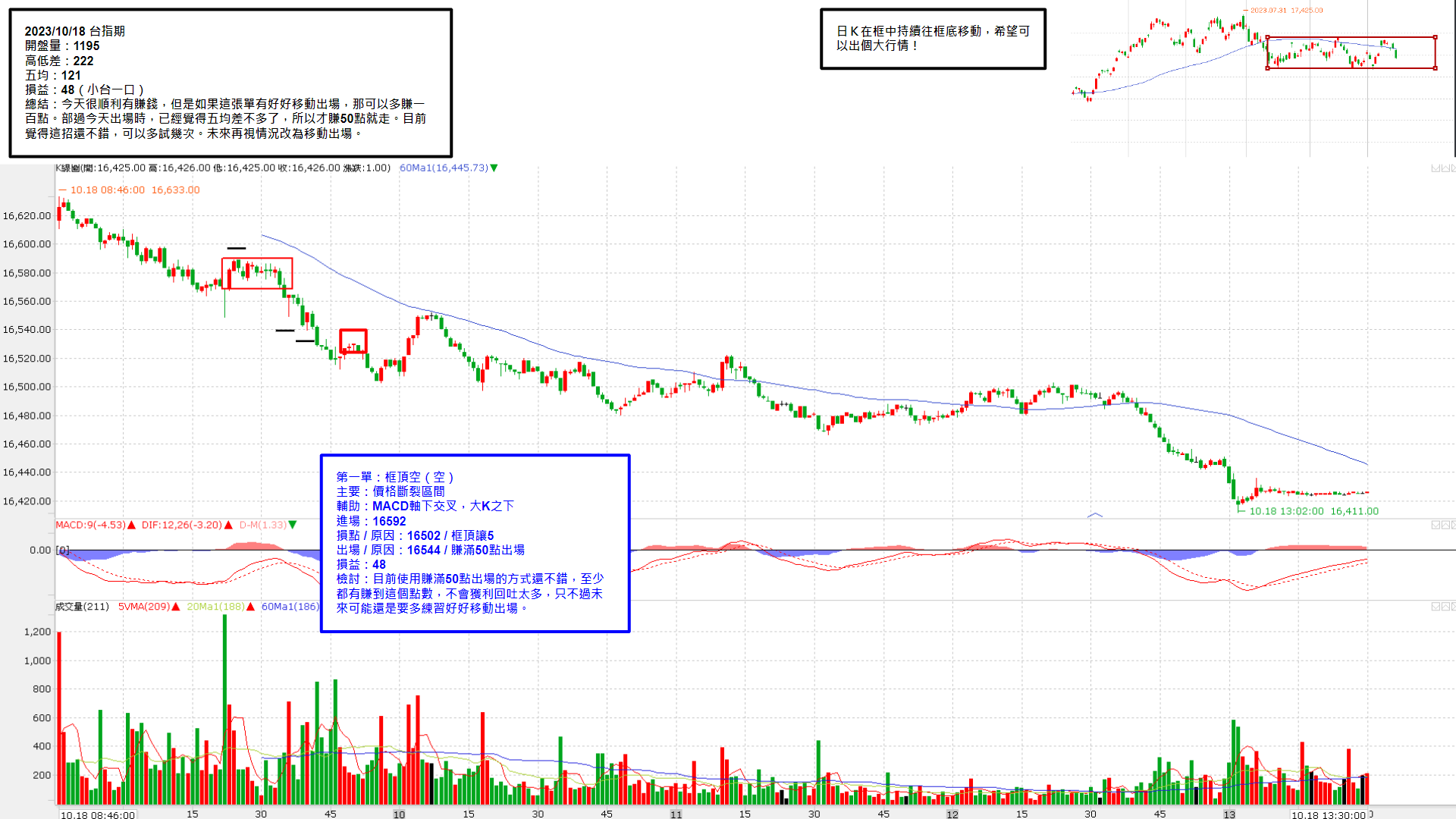 今天很順利有賺錢,但是如果這張單有好好移動出場,那可以多賺一百點。部過今天出場時,已經覺得五均差不多了,所以才賺50點就走。目前覺得這招還不錯,可以多試幾次。未來再視情況改為移動出場。